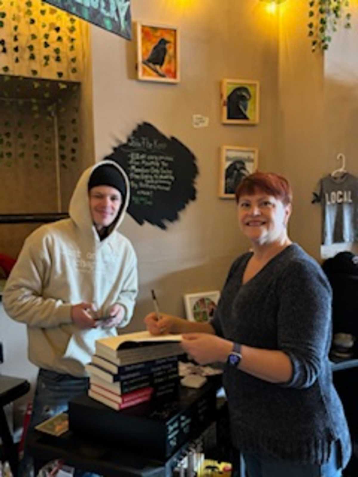 Athenix Books & Brews, newly open in Little Falls, NY, features a variety of new and used books and even has a local author section. Nick Bennett, entrepreneur and owner, welcomed me to the store on January 13, when I delivered and signed copies of Wednesday Wine Club, The Haunted Boathouse, Love After Life and Soulmates. The store is trendy, cozy and full of great reads, fits and artwork. When the cafe opens, plan on grabbing a bev while you peruse the merch. I'm already looking forward to my next visit to Athenix, 624 E Main St, Little Falls, NY.